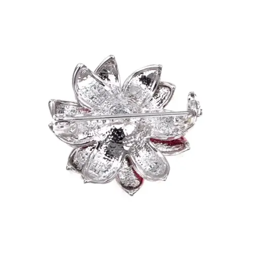 Брошь в форме цветка для украшения одежды. Изготовлена из бижутерного сплава с покрытием под серебро и вставками из стразов.