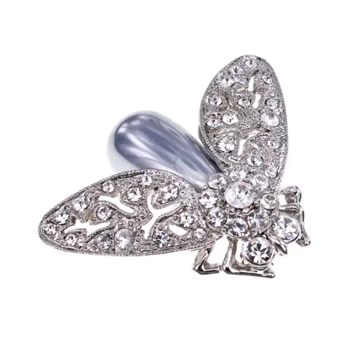 Брошь Цикада, цвет серебряный со стразами UE007