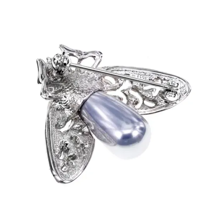 Брошь в форме цикады из бижутерного сплава со стразами и искусственным жемчугом.