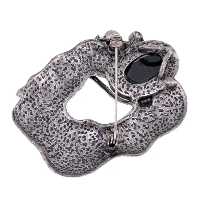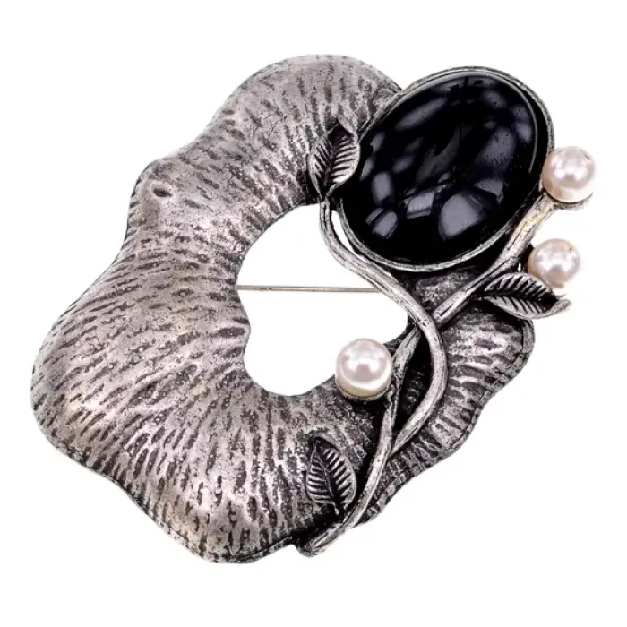 Брошь в виде цветка с элементами из искусственного жемчуга и синтетического черного агата.