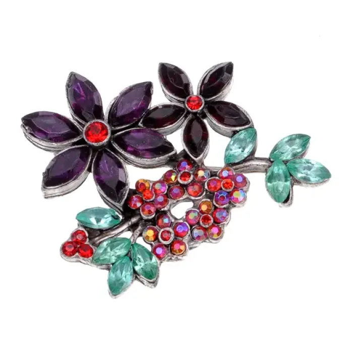 Брошь Цветы с камнями UE042