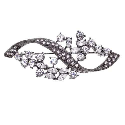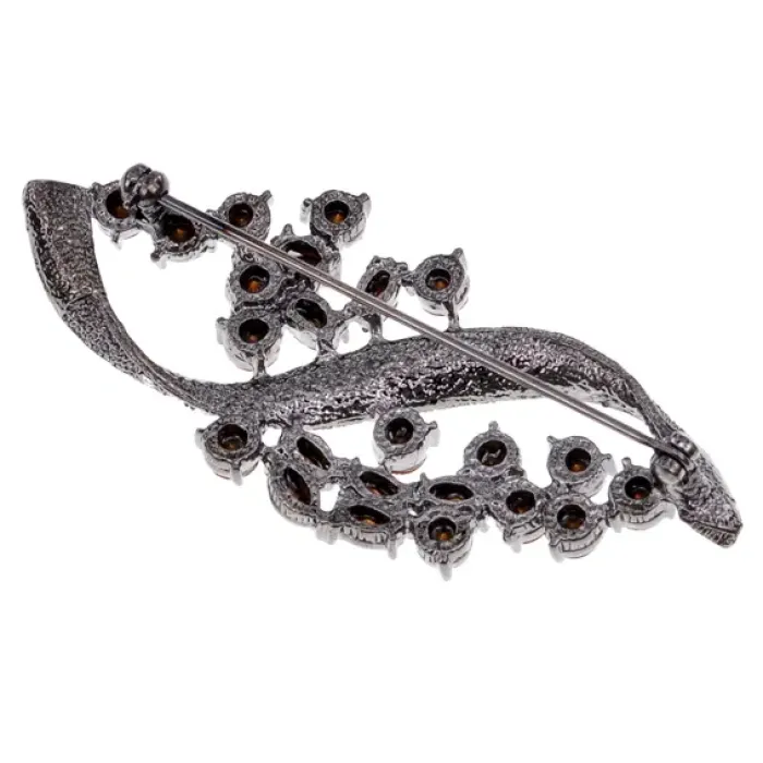Брошь из бижутерного сплава с кристаллами, черного цвета.