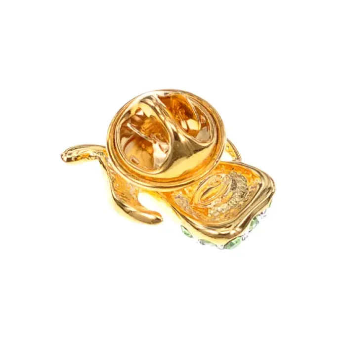 Брошь Груша, цвет золотой зелеными кристаллами Сваровски UE048-G