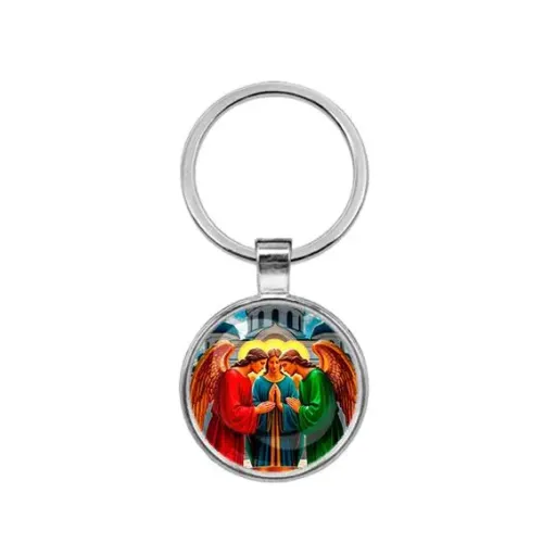 Круглый брелок в цвете серебра — это стильный аксессуар с глубоким символическим значением. Он изображает Троицу и станет прекрасным подарком для тех, кто ценит духовные традиции. Изготовленный из бижутерного сплава с покрытием под серебро и стекла, этот брелок не только красив, но и долговечен.