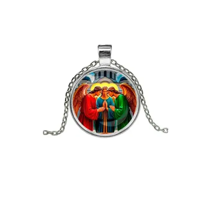 Кулон "Троица" — это изысканное украшение, которое сочетает в себе красоту и символику. Он выполнен из бижутерного сплава с покрытием под серебро и дополнен стеклянной линзой, защищающей изображение. Основные характеристики включают диаметр кулона 28 мм и длину цепочки 60 см с надёжным замком типа лобстер.
