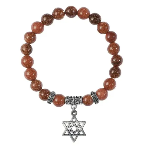 Браслет-амулет из синтетического коричневого авантюрина с подвеской в виде звезды Давида.
