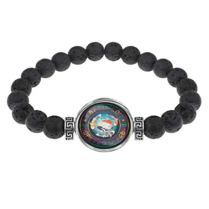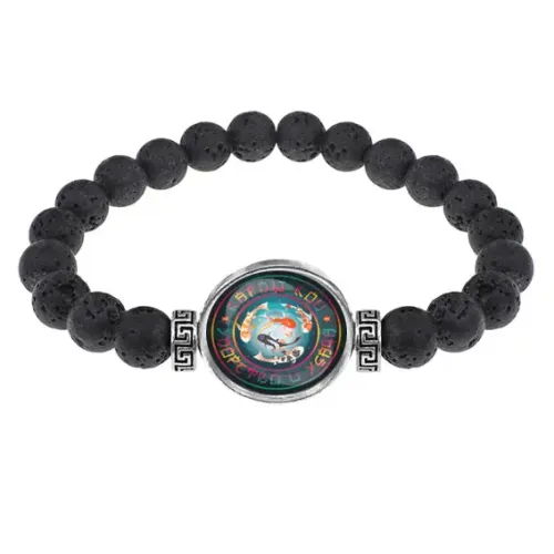 Стрейч-браслет из натуральной лавы с изображением под выпуклой стеклянной линзой.