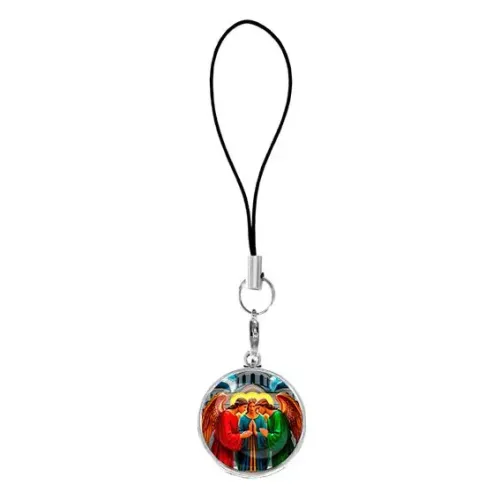 Подвеска для телефона — стильный аксессуар с культурным символом Троицы. Этот брелок из бижутерного сплава под серебро станет прекрасным дополнением к любому мобильному устройству.