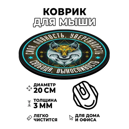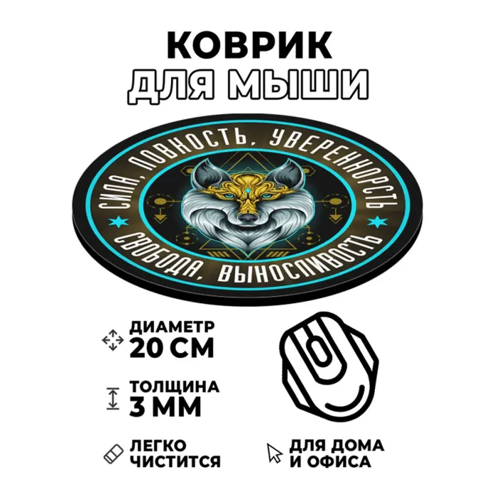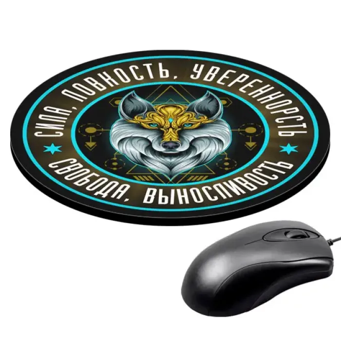 Коврик для компьютерной мыши круглой формы с изображением волка.