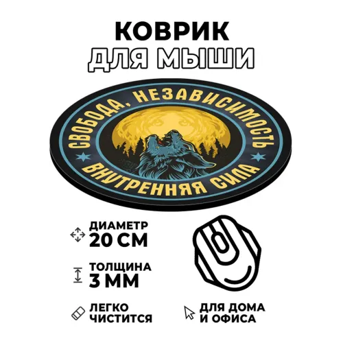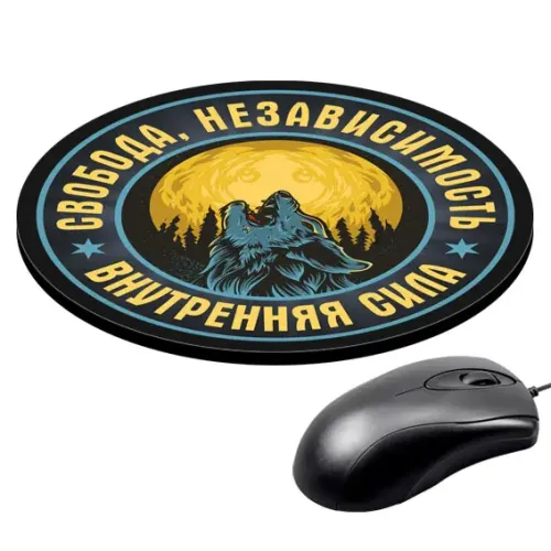 Коврик для компьютерной мыши круглой формы с изображением волка, воющего на луну.