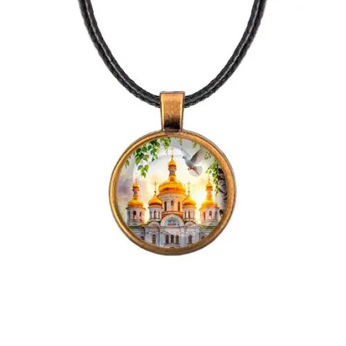 Кулон, цвет бронза, со шнурком, Храм и березы C1160029