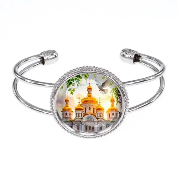 Браслет металлический, цвет серебро, Храм и березы C1160034