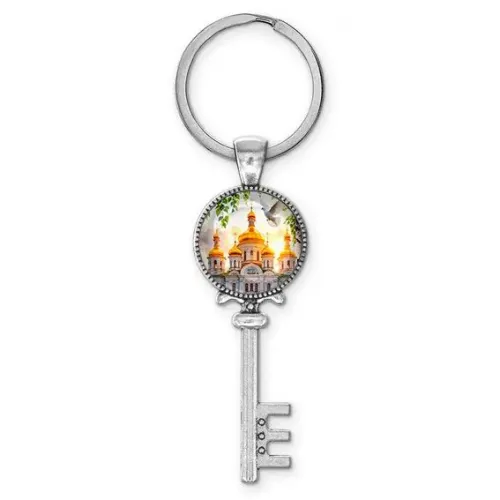 Брелок ключ, цвет серебро, с кольцом для ключей, Храм и березы C1160044