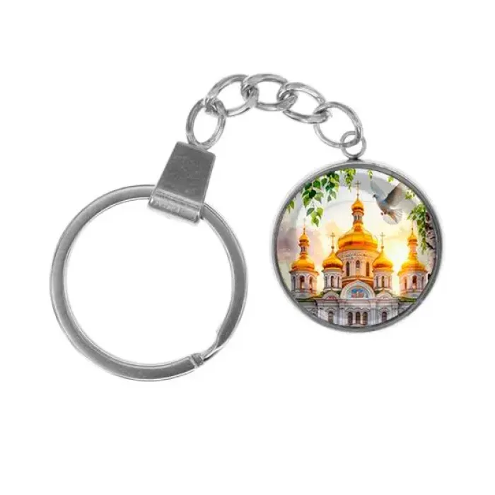 Брелок, нержавеющая сталь, с кольцом для ключей, Храм и березы C1160061