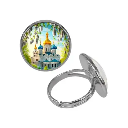 Кольцо металлическое, цвет серебро, Храм и вербы C1161015