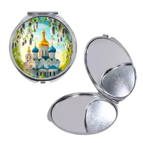 Круглое складное зеркало, цвет серебро, Храм и вербы C1161016
