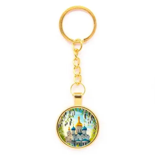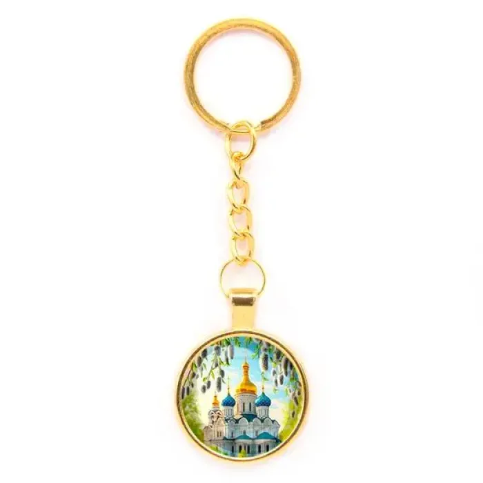 Круглый брелок, цвет золото, с цепочкой, Храм и вербы C1161020