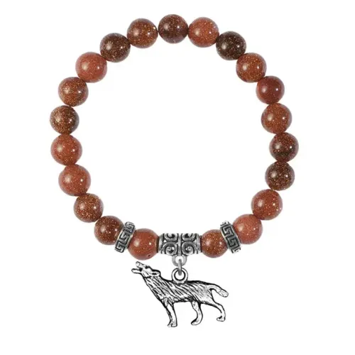 Браслет-амулет из синтетического коричневого авантюрина с подвеской в виде волка.