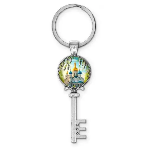Брелок ключ, цвет серебро, с кольцом для ключей, Храм и вербы C1161044