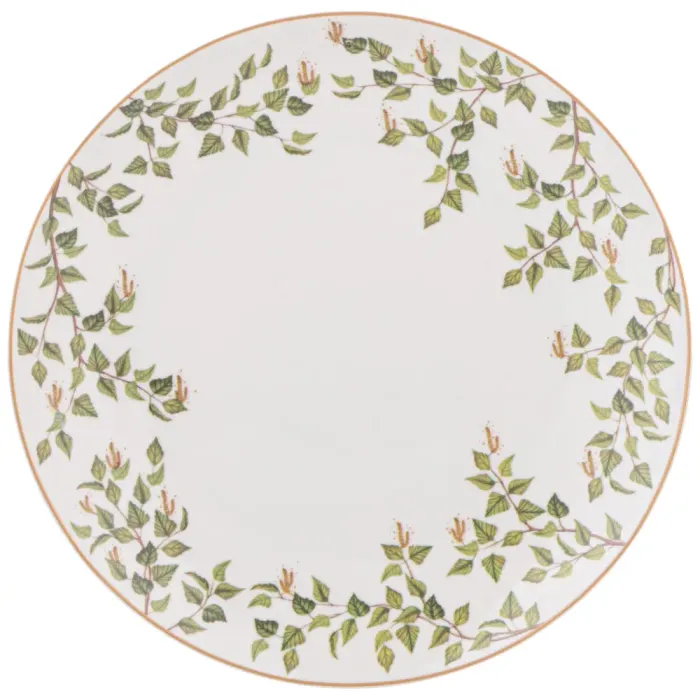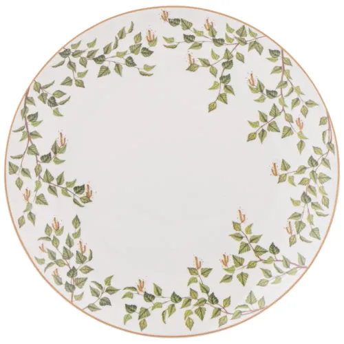 Тарелки выполнены из тонкостенного упрочненного фарфора, что обеспечивает их прочность. Дизайн коллекции вдохновлён природными мотивами березы. Конструктивно изделия представляют собой классические закусочные тарелки с ровным бортиком.