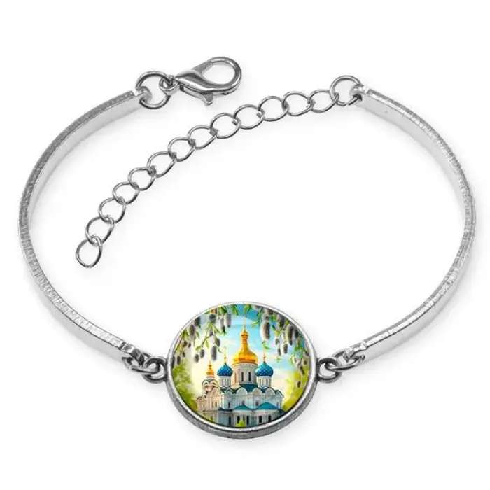 Элегантный браслет с изображением Храма и вербы — это не только стильный аксессуар, но и символ духовности. Изготовленный из бижутерного сплава с покрытием под серебро, он придаст образу утончённость. Выпуклая стеклянная линза диаметром 18 мм защищает изображение и добавляет блеска. Безразмерный дизайн позволяет легко регулировать браслет по руке, что делает его универсальным дополнением к любому наряду. Этот аксессуар станет отличным подарком для ценителей оригинальных украшений.