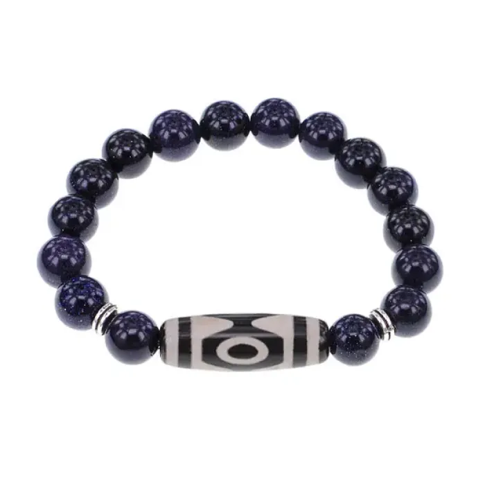 Браслет с 3-глазой бусиной Дзи и синт.камнем Синий авантюрин BSDS-01-02