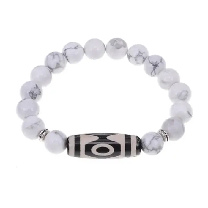 Стрейч-браслет из натурального камня кахолонг с тибетской бусиной Дзи из агата.