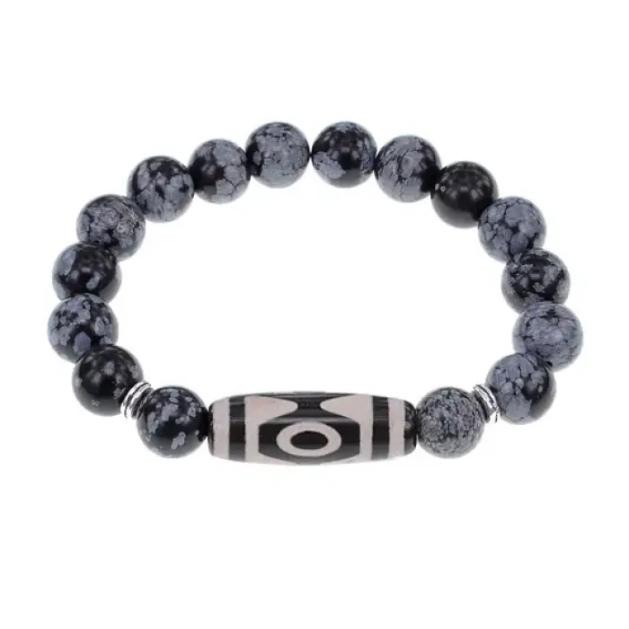 Браслет с 3-глазой бусиной Дзи и нат.камнем Снежный обсидиан BSDS-01-14