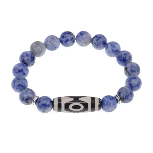 Браслет с 3-глазой бусиной Дзи и нат.камнем Содалит BSDS-01-18