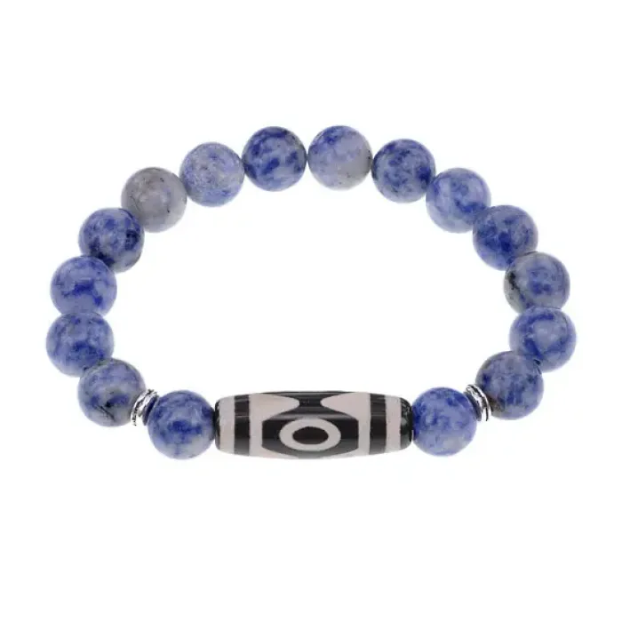 Стрейч-браслет из натурального камня с тибетской бусиной Дзи из агата.