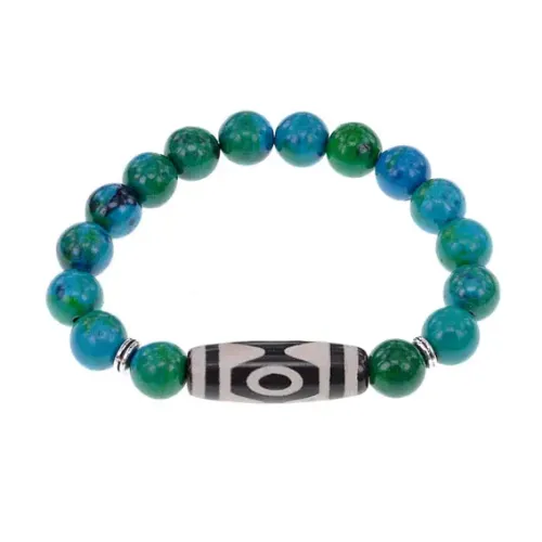 Браслет с 3-глазой бусиной Дзи и синт.камнем Хризоколла BSDS-01-21