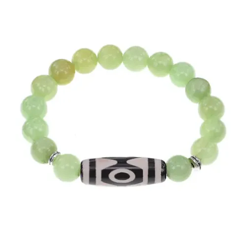 Стрейч-браслет с тибетской бусиной Дзи из агата и синтетическим камнем.