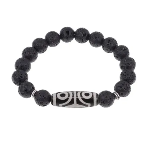 Браслет с 4-глазой бусиной Дзи и нат.камнем Лава BSDS-02-09