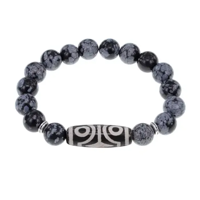 Браслет с 4-глазой бусиной Дзи и нат. камнем Снежный обсидиан BSDS-02-14