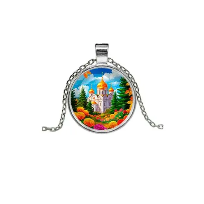 Кулон «Храм и цветы» — это изысканный аксессуар, который сочетает в себе красоту природы и архитектурного искусства. Он выполнен из бижутерного сплава с покрытием под серебро и дополнен стеклянным элементом. Этот кулон станет отличным подарком для ценителей уникальных украшений.