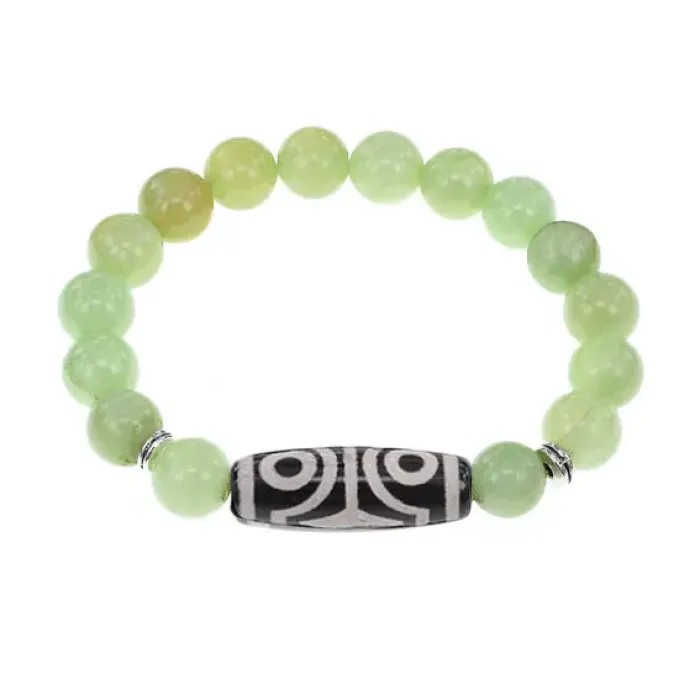 Стрейч-браслет с тибетской бусиной Дзи из агата и синтетическим камнем, имитирующим оникс.