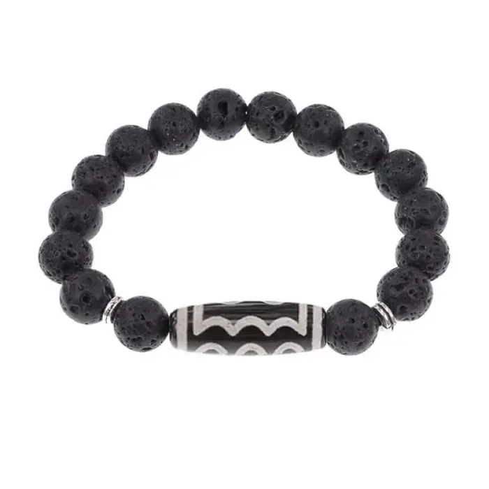 Браслет с 5-глазой бусиной Дзи и нат.камнем Лава BSDS-03-09