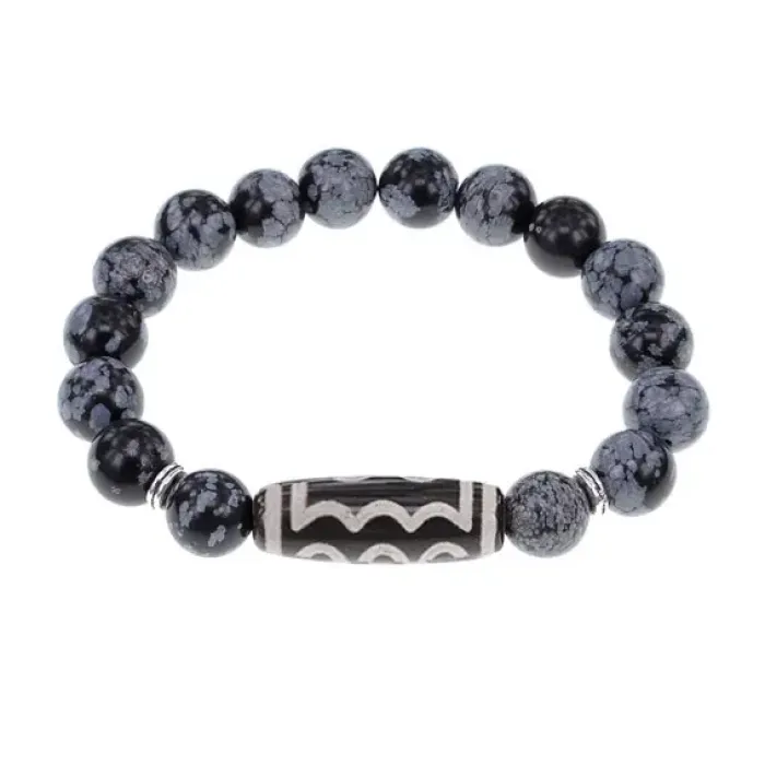 Браслет с 5-глазой бусиной Дзи и нат.камнем Снежный обсидиан BSDS-03-14
