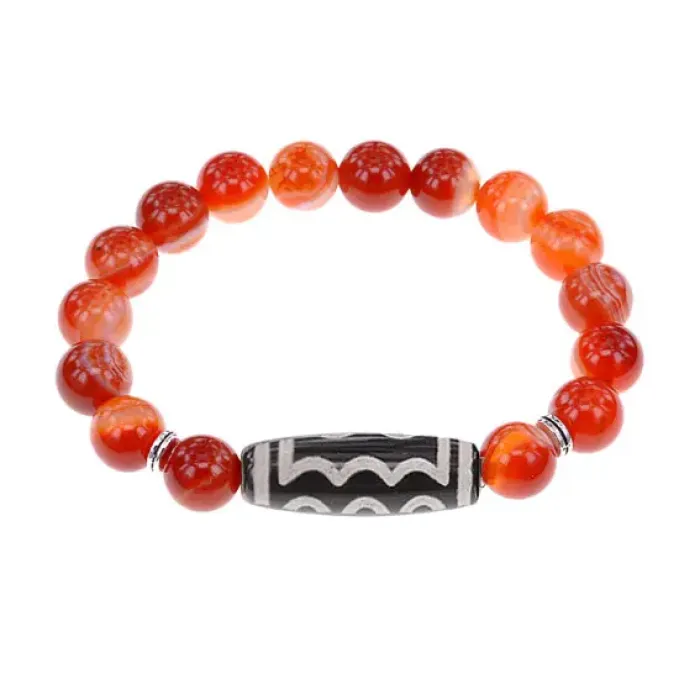 Стрейч-браслет из натурального камня с тибетской бусиной Дзи.