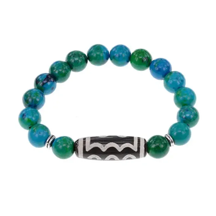 Стрейч-браслет из синтетического камня с тибетской бусиной Дзи из агата.