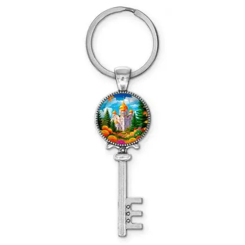 Брелок ключ, цвет серебро, с кольцом для ключей, Храм и цветы C1162044