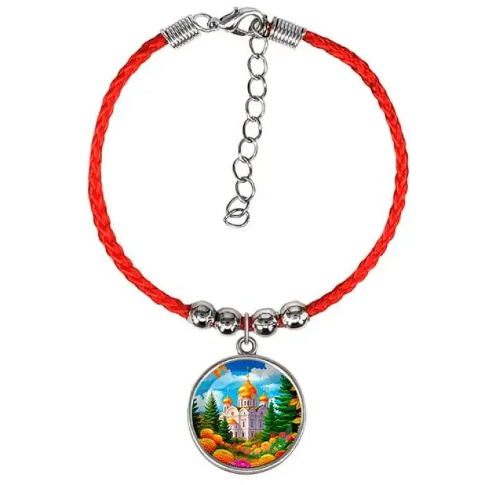 Браслет из красного шнура, Храм и цветы C1162047