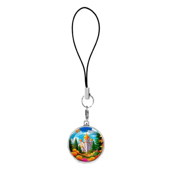 Подвеска для телефона, цвет серебро, со шнурком, Храм и цветы C1162060