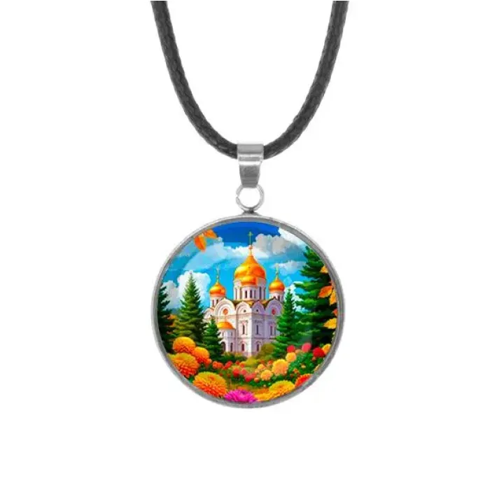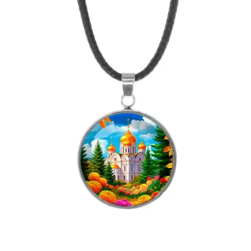 Кулон - амулет из тонкой и прочной нержавеющей стали с изображением храма и цветов. Этот стильный аксессуар не только подчеркнет индивидуальность, но и станет символом защиты и благополучия. Диаметр кулона составляет 26 мм, а изображение защищено выпуклой стеклянной линзой диаметром 25 мм. В комплект входит шнурок длиной 49 см, что позволяет удобно носить кулон на шее. Такой кулон идеально подходит как для повседневного использования, так и для особых случаев.