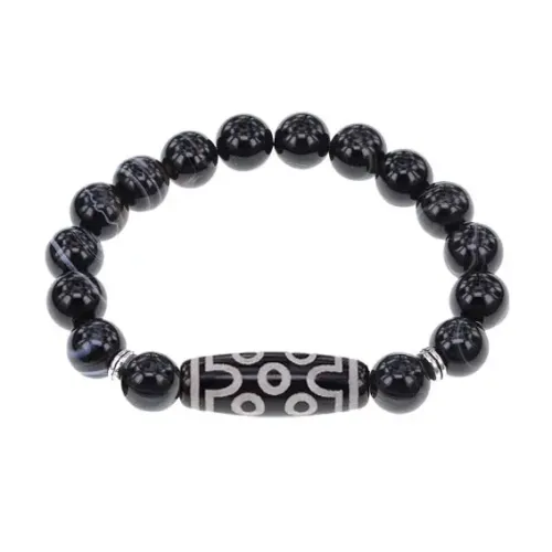Материал и изготовление: Натуральный камень (черный агат), бусина Дзи.
