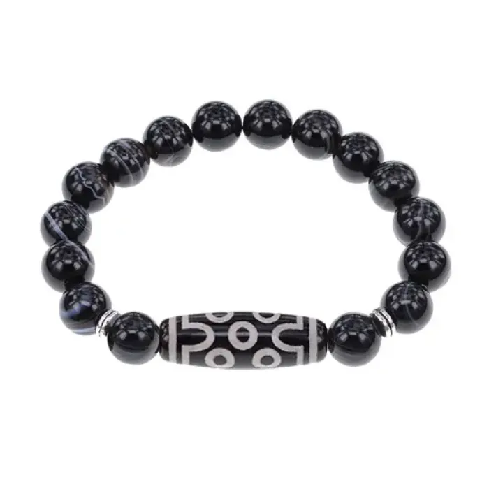 Браслет с 7-глазой бусиной Дзи и нат.камнем Черный агат BSDS-04-23