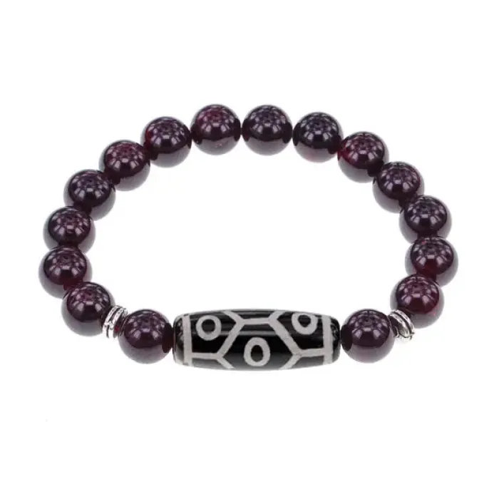 Стрейч-браслет из натурального камня с тибетской бусиной Дзи из агата и гранатом.