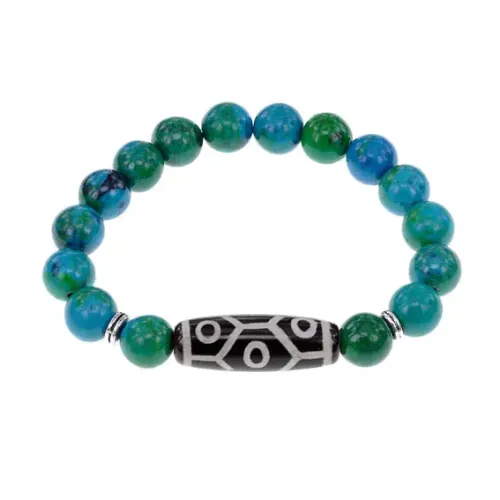 Стрейч-браслет из синтетического камня с тибетской бусиной Дзи из натурального агата.