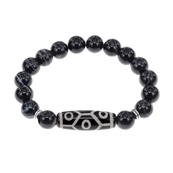 Стрейч-браслет из натурального черного агата с тибетской бусиной Дзи.
