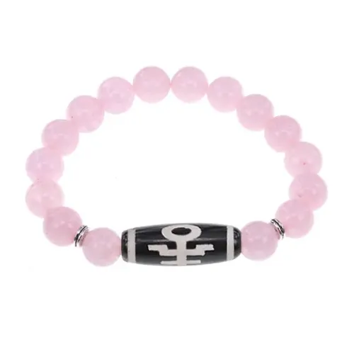 Стрейч-браслет для ношения, выполненный из натурального агата и розового кварца с тибетской бусиной Дзи.